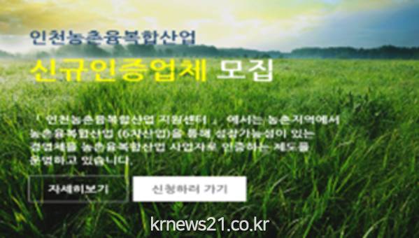 인천시(시장 박남춘)는 인천지역 농가의 부가가치를 높이기 위한 6차 산업 도입이 본격화 된지 5개월만에 ‘인천6차산업.com’ 홈페이지를 제작하고 본격적인 가동에 들어갔다.