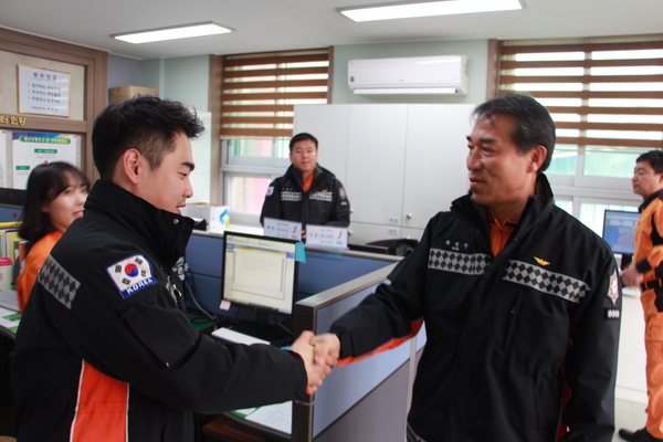 고창소방서장, 현장대원 격려의 따뜻한 손 맞잡아