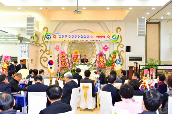 고창군이장단연합회가 28일 고창군 르네상스웨딩홀에서 유기상 군수, 성경찬 도의원 등 기관사회단체장 등 100여명이 참석한 가운데 연합회장 이·취임식을 열었다.