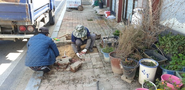 무장면은 소재지 일대에 움푹 파여 있거나 갈라진 보도블럭을 교체해 주민들의 통행 불편 해소를 위해 노력했다.