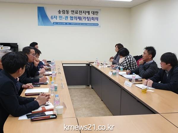 인천시(시장 박남춘)는 송림동 연료전지 사업에 대한 갈등 해결방안을 모색하고자 동구수소연료전지발전소 건립반대 비상대책위원회(이하 “비대위”)·인천연료전지(주)·인천시·동구·시의원·구의원으로 구성된 6자 민관협의체를 구성하여 8일 첫번째 회의를 개최했다