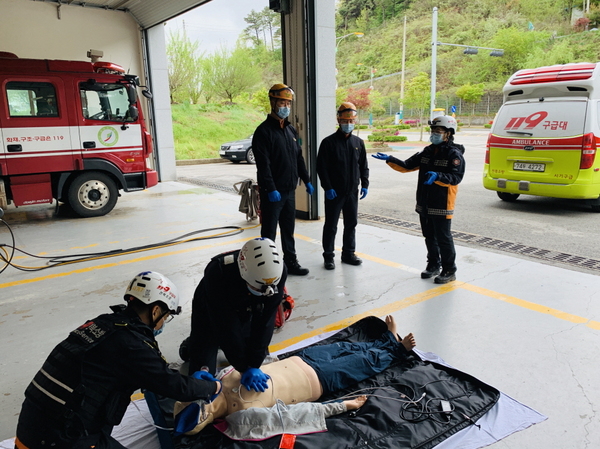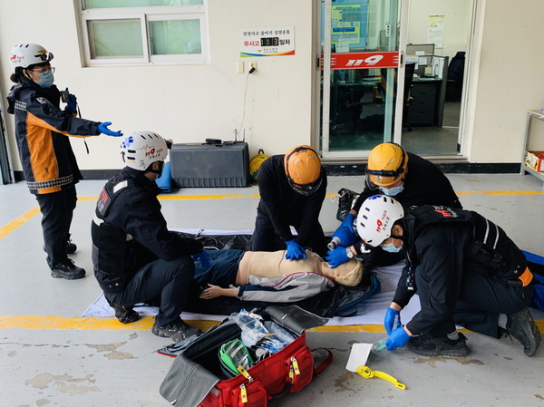 이날 훈련은 심정지 등 가상의 응급상황 시나리오를 부여하여 대원별 임무 분담 및 수행을 통한 팀워크를 점검하고, 전문인명소생술마네킨(Resusci Anne Simulator)을 활용하여 설정된 환자상태에 따라 전문기도확보술, 정맥로 확보 등 전문처치술을 적용하는 방식으로 진행됐다.