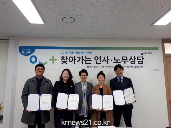 인천여성가족재단 대표이사 인천광역여성새로일하기센터장(대표이사 원미정)은 지난 4월 24일(수) 인천여성가족재단 대표이사실에서 전문 공인노무사 5명과 『찾아가는 노무상담』위촉식을 진행하였다.