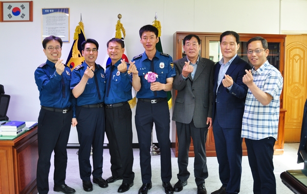 이날 소회의실에서 각 과장과 동료들이 참석하여 새로 부임한 제296기 경장 김대은에게 환영과 부임을 축하하는 격려의 메시지를 전달하였다.
