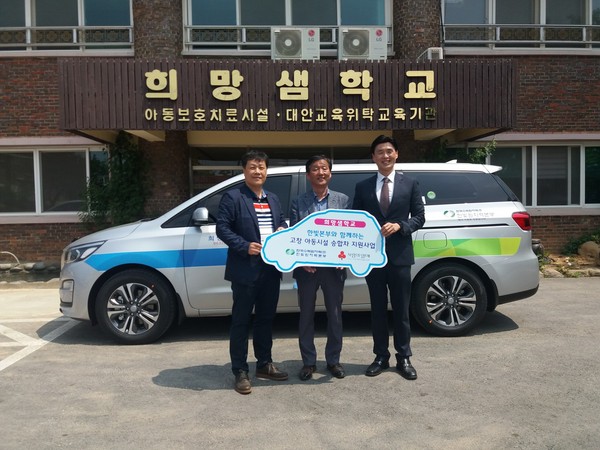 고창군과 한국수력원자력(주) 한빛원자력본부가 지난 14일 고창군 아동복지시설 희망샘학교에서 승합차 전달식을 가졌다.