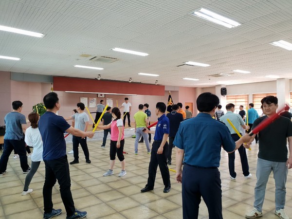 이번 무도 훈련은 내부 무도교관이 스트레칭 등 준비운동에 이어 삼단봉 호신술 등 체포술 훈련을 실시해 안전한 범인 검거 및 제압이 이루어질 수 있도록 교육을 실시했다.