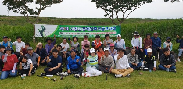 고창군 장애인후원회(회장 박현규)가 지난 18일 서해안고속도로 고인돌상행휴게소 파크골프장에서 ‘제1회 고창군 장애인 파크골프대회’를 성황리에 열었다.