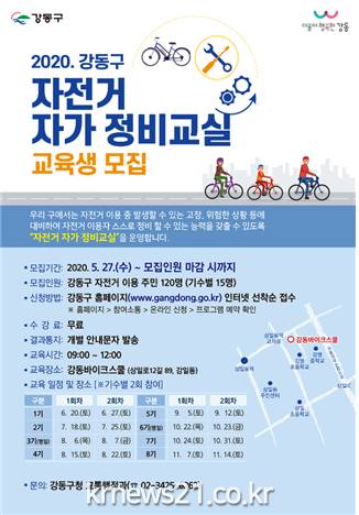 이정훈 강동구청장은 “코로나19 영향으로 자전거를 이용하는 구민이 늘면서 안전사고 예방을 위한 노력이 더 중요해졌다. 자전거 자가 정비교실을 통해 주민들이 안전하게 자전거를 탈 수 있는 환경을 마련하도록 노력하겠다”고 말했다.