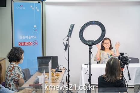 이를 위해 구는 7월과 8월에 걸쳐 마을교사를 대상으로 온라인 콘텐츠 제작 역량강화 교육을 실시하고, 지난 11일 자기주도학습센터에 강동혁신교육지구 마을교사 전용 영상촬영 스튜디오인 ‘강동마을학교 studio ON’을 조성하여 마을교사의 온라인 수업 영상제작을 지원하고 있다.