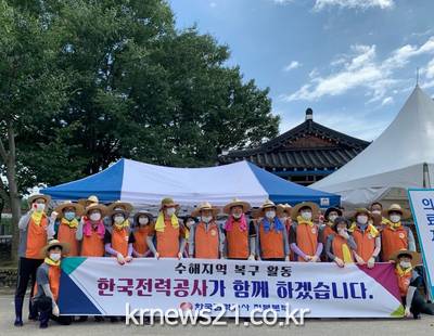 한전 전북본부(본부장 이경섭)에서는 남원지사(지사장 박범수)를 중심으로 지난 집중호우로 인한 피해를 입은 지역의 수해복구를 위해 팔을 걷어 붙였다. 이경섭 한전 전북본부장을 비롯해 전북본부 직원 60여명은 8월 13일 집중호우로 인해 전국에서 가장 피해가 큰 남원시 송동면 세전리 동양마을을 찾았다.