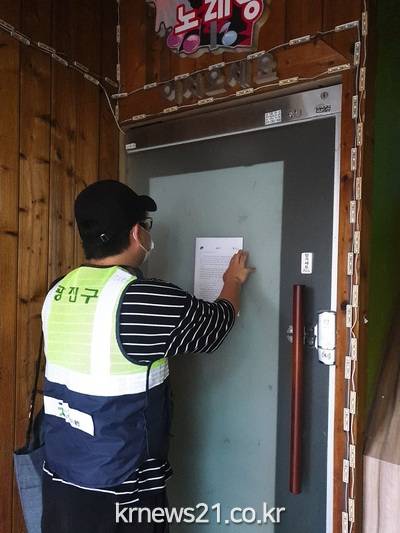 구는 공무원, 광진구체육회·스포츠클럽 관계자 등으로 2인 1조 점검단을 구성하여 후속 조치가 시작된 19일 0시부터 지역 내 고위험시설 458개소에 직접 방문해 운영중단 안내문을 전달했다.