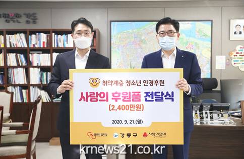 코로나19 확산과 침체된 경제 상황 속에 시력 관리가 쉽지 않은 취약계층 청소년들의 눈 건강을 보호하기 위해 글로리 안경원 성내점이 2천 4백만 원 상당의 시력교정 안경을 강동구에 지원하기로 했다.