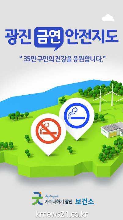 ‘광진금연안전지도’ 앱은 지난해 12월 말 개발되어 올해 3월부터 운영에 들어갔다. 이 앱은 비흡연자의 간접흡연을 예방하기 위해 현 위치를 기반으로 하여 주변 금연구역과 실외 흡연실 등을 지도에 표시해주는 역할을 한다.