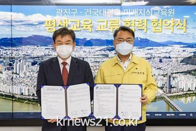 광진구(구청장 김선갑)가 13일 건국대학교 미래지식교육원과 지역의 평생교육 활성화를 위한 ‘평생교육 교류협력 협약’을 체결했다.