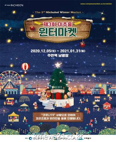 인천광역시(시장 박남춘)와 인천관광공사(사장 민민홍)는 오는 12월 5일(토)부터 내년 1월 말까지 주안역 북광장에서‘제3회 미추홀 윈터마켓’을 운영한다고 밝혔다.