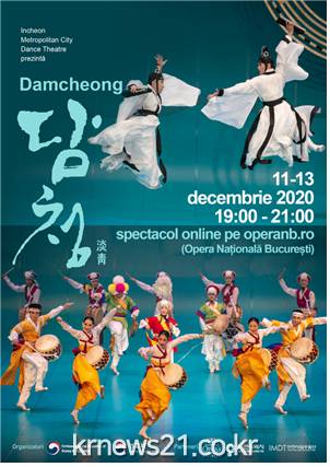 한-루마니아 수교 30주년 등을 맞이하여 외교부 주요 외교계기기념 사업의 일환으로 인천시립무용단(예술감독 윤성주)의 작품 <담청(淡靑)>이 루마니아 오페라극장 부카레스트 국립 오페라 극장에서 온라인 송출된다.