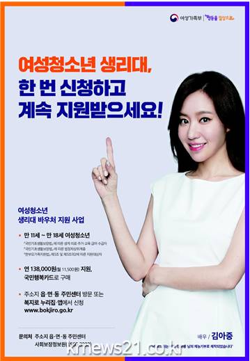 지원 대상은 국민기초생활보장법에 따른 생계·의료·주거·교육급여 수급자, 법정차상위계층, 한부모가족지원법에 따른 만 11세 ~ 18세 (2003. 1. 1.~ 2010. 12. 31. 출생) 여성청소년이다.