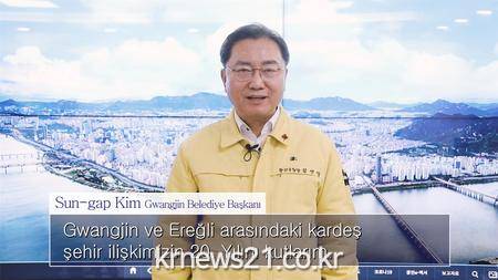 김선갑 구청장은 ‘안녕하세요’라는 의미인 터키어 “메르하바(Merhaba)”로 영상 메시지를 시작하며, “광진구와 에레일리구의 우호교류 20주년을 축하한다. 우리는 지난 2001년부터 20년 동안 변함없는 우정을 쌓아왔다”라고 말했다.