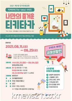 이번 “나만의 즐거운 티키타카(Tiki-Taka)” 공예생활편은 수강생들이 체험을 통해 성취감을 줄 수 있도록 쉽게 따라할 수 있는 예술을 토대로 1인 1창조가 가능한 원데이클래스 프로그램으로 구성되어 2021년 6월 11일(금) ~ 6월 25일(금)까지 진행된다.