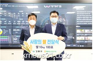 강동구(구청장 이정훈)는 지난 16일(수) 오후 1시, 구청장 집무실에서 ㈜NH농협무역에서 기부한 쌀 10kg, 100포 전달식을 진행했다고 밝혔다.