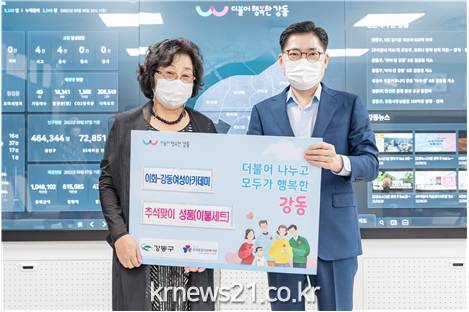「이화-강동 여성아카데미」 최점남 회장은 “코로나19로 인해 어려운 시간을 보내고 있는 우리 이웃들에게 아카데미 회원들이 십시일반 모은 정성이 따뜻하고 풍성한 한가위를 보내는데 보탬이 되기를 바란다.”고 전했다.