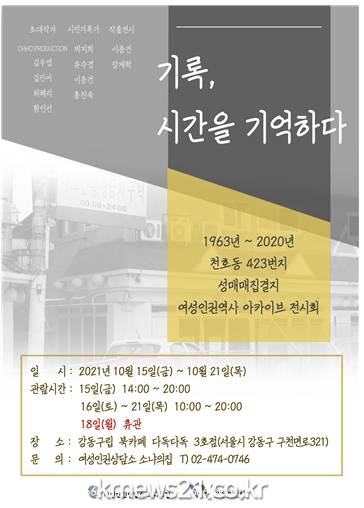 강동구(구청장 이정훈)는 ‘천호동 423번지 성매매집결지’의 기록화 사업을 위한 전시회를 강동구 북카페도서관 다독다독 구천면로점에서 21일(목)까지 개최한다고 밝혔다.