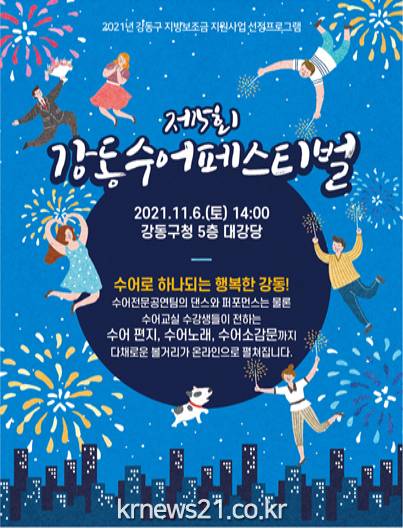 강동구(구청장 이정훈)가 오는 11월 6일(토) 14시부터 16시까지 강동구청 5층 대강당에서 ‘수어페스티벌’을 개최한다고 밝혔다.