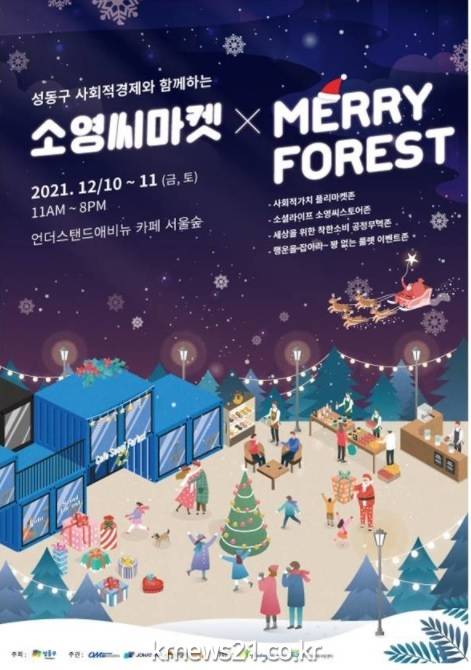 공정무역도시 서울 성동구(구청장 정원오)가 이달 10일부터 11일까지 양일간 성수동 언더스탠드에비뉴 카페 서울숲에서 ‘소영씨마켓 × Merry Forest’를 개최하며 착한 소비 촉진에 나선다.