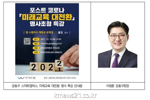특강 신청은 강동 미래교육혁신센터 홈페이지를 통해 신청가능하며, 보다 자세한 내용은 강동구청 교육지원과(☎02-3425-5215)로 문의하면 된다.