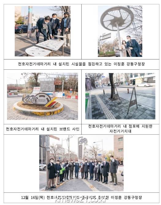 강동구(구청장 이정훈)가 천호동공원사거리부터 한강으로 가는 즈믄나들목까지 (천호자전거거리)에 자전거를 테마로 한 ‘천호자전거테마거리’를 조성했다.