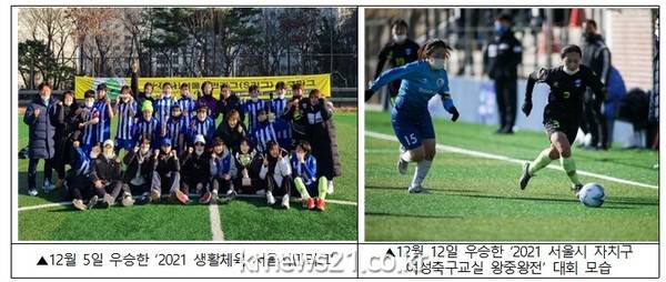 지난 12월 11일, 12일에 열린 ‘2021 서울특별시 자치구 여성축구교실 왕중왕전(이하 여성축구 왕중왕전)’에서는 3전 3승의 우수한 실력으로 종합 1위에 올랐다.