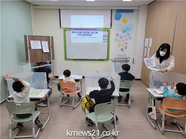 교육은 ▲모의 학교체험 ▲읽기학습으로 구성됐다. ‘모의 학교체험’은 자기물건에 이름쓰기, 학급규칙 정하기, 시계보기, 경청하기 훈련, 모둠활동 등으로 공동체 생활에 적응할 수 있는 생활습관 교육에 중점을 두었다. ‘읽기학습’은 바른자세로 읽고 쓰기부터 자음과 모음 이해하기, 자석으로 글자 만들기, 그림일기 쓰기 등 학습에 필요한 기초교육을 받는다. 교육은 매회 2시간 씩 진행된다.