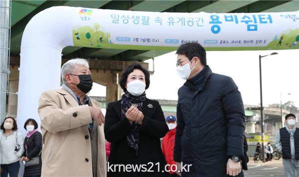 자녀와 함께 한강에서 중랑천까지 물길을 따라 자전거를 즐기는 금호동 주민 남 모씨는 “중랑천변에 생수 한 병 살 수 있는 편의시설 한 곳이 없었는데, 이런 장소가 생기니 너무 좋다”며 “용비쉼터는 이제 간식 먹으러 잠시 쉬었다가 서울숲을 갈지 청계천으로 갈지를 결정하는 아지트가 될 것 같다”고 반색했다.