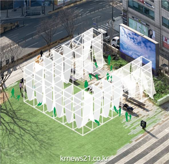 「구청」 옆 「빛 놀이터」는 파빌리온 구조를 기본으로 하여 어린이에게 상상과 즐거움을, 어른들에게는 힐링의 시간을 제공하기 위해 준비했다.