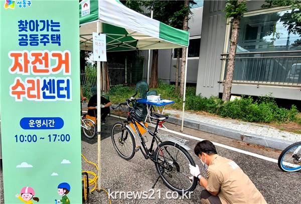 이에 성동구는 화석연료 소비 없는 친환경 이동 수단으로 자전거 이용자가 계속해서 증가하고 있고 장기간 지속되고 있는 코로나19 상황 등을 고려해 생활밀착형 서비스로 인기가 높았던 ‘찾아가는 공동주택 자전거 수리 센터’를 지난해에 이어 올해도 운영하게 됐다.