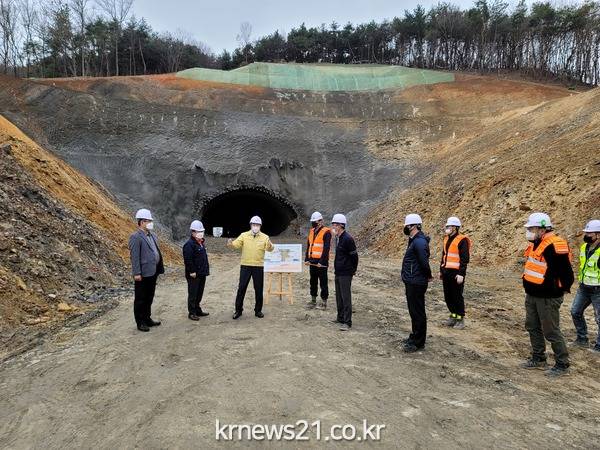 시에 따르면 그간 터널 종점부 연약지반 발생으로 공사에 어려움을 겪었으나, 당초 157억 원이었던 사업비를 12억 원 증액해 지반 보강공사를 완료하여 터널 관통을 무사히 마쳤다.