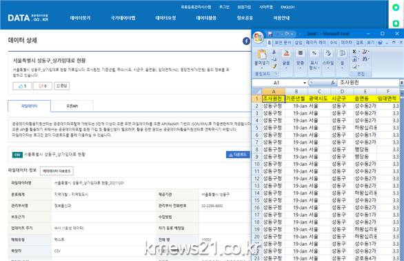 공개되는 사항은 지역 내 상가 총 10,053개의 임대료 등의 정보로 2019년부터 2021년의 기간을 중점적으로 해당 월에 따른 동단위의 임대면적(㎡)과 평당 전세가(만원) 등이다.