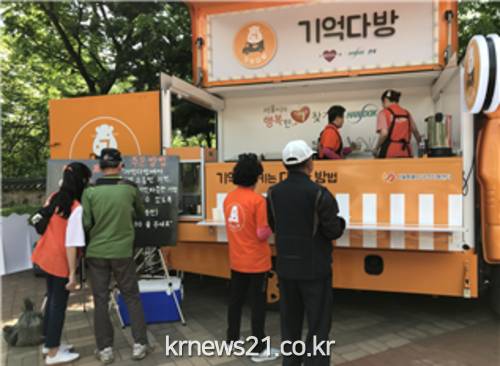 ‘기억다방(기억을 지키는 다양한 방법)’은 경도인지장애 또는 경증 치매 진단을 받은 어르신들이 일일 직원으로 참여하는 이동식 카페다. 치매 어르신들이 커피와 각종 주스 등 음료를 직접 주문받고 제조해 판매하는 형식으로 운영한다.