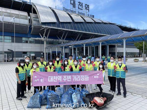 지난 17일에는 보령과 홍성 ASEZ WAO 회원, 동료 30여 명이 대천역에서 정화운동을 실시했다. 여름철 관광객 등 유동인구가 증가해 역 주변 시설과 도로에 무단 투기된 쓰레기가 많아진 탓이다. 이에 봉사자들은 이곳을 찾는 이들에게 쾌적한 환경을 선물하고자 약 2시간 동안 일대를 정화해 50L 쓰레기봉투 10개에 달하는 쓰레기를 수거했다. 또한 지구환경 보호를 위해 플라스틱 사용을 줄이자는 내용의 캠페인도 전개해 관광객과 지역민들의 의식 증진에도 기여했다.
