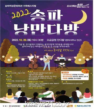 송파구(구청장 서강석)가 오는 29일 오후 4시 30분부터 오금공원 잔디마당에서 ‘2022 송파 낭만다방’을 개최한다.