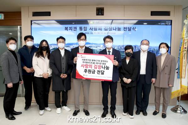 성동구(구청장 정원오)에서는 지난 3일 성동구청에서 재단법인 행복ICT(대표이사 김준범)의 ‘사랑의 김장나눔’ 후원금 전달식을 진행했다.