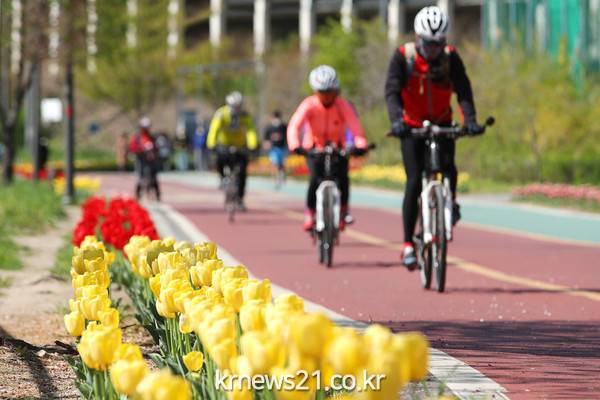 ▲ 사진=성동구에 정비한 중랑천 튤립꽃길