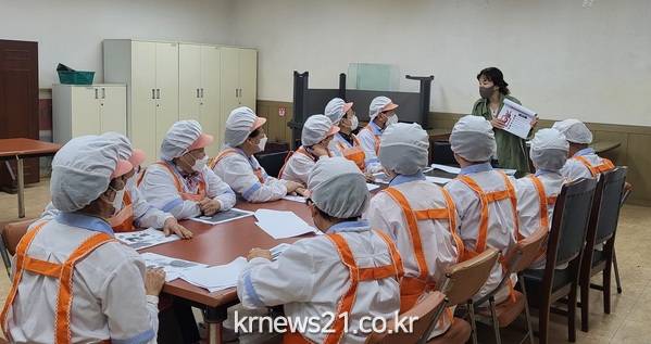 ▲ 사진=급식도우미 일자리에 참여한 어르신들이 연간 의무교육을 받고 있는 모습