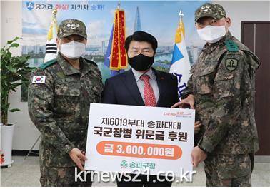송파구(구청장 서강석)가 12월 26일 지역방위 및 국가안보를 위해 애쓰고 있는 제6019부대를 찾아 이들을 격려했다.
