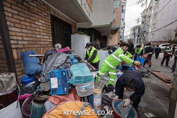 구는 17일에도 대청소를 이어가 집 안에 남아 있는 쓰레기를 처리한다. 물청소와 방역까지 시행해 마무리 작업에 철저를 기할 계획이다.