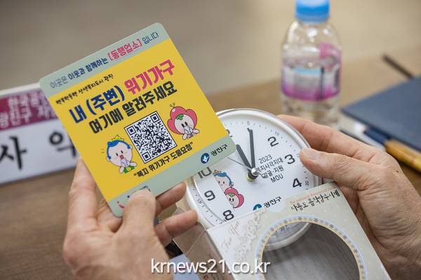 ▲ 사진=위기가구 신고 QR코드 스티커와 협약 인증 물품인 흡착 시계