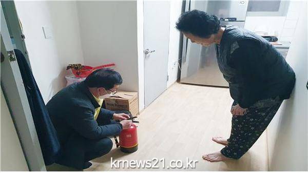 ▲ 사진=지난해 성동구 관계자가 안전취약가구를 방문해 소방시설을 점검하고 있다.