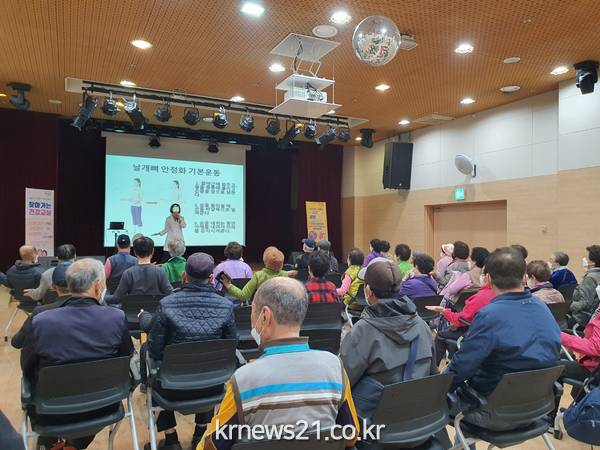 ‘한 방에 잡는 통증관리’ 한방 교육은 어르신에게 바른 자세와 통증관리를 주제로 보건소의 한방진료 한의사가 진행했다. 한의사는 ▲척추의 이상적인 형태와 올바른 자세 유지 방법 ▲근골격계 질환 예방에 좋은 일상 습관 ▲척추 중립 자세에 필요한 코어근육 강화 방법과 스트레칭 ▲통증관리를 위한 혈자리 지압 등을 강의하고, 함께 실습해보는 시간도 가졌다.
