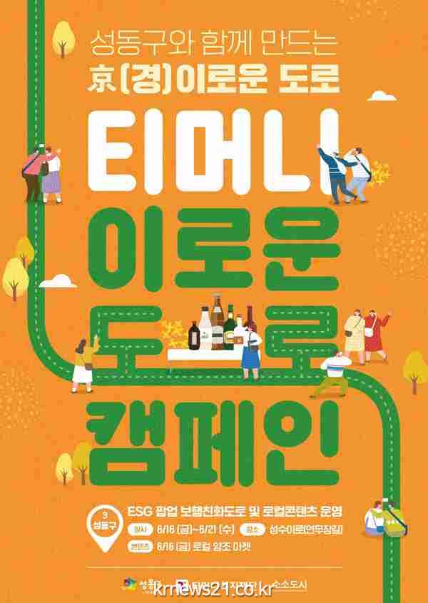 ‘이로운 도로 캠페인’은 안전하고 쾌적한 보행환경을 주민들이 경험할 수 있도록 자동차 중심의 도로 공간을 일시적으로 보행자를 위한 환경으로 조성하는 프로그램이다. 성동구와 (재)티머니복지재단, ㈜소소도시가 협약을 맺고 ESG 사회공헌 협력사업으로 추진한다.