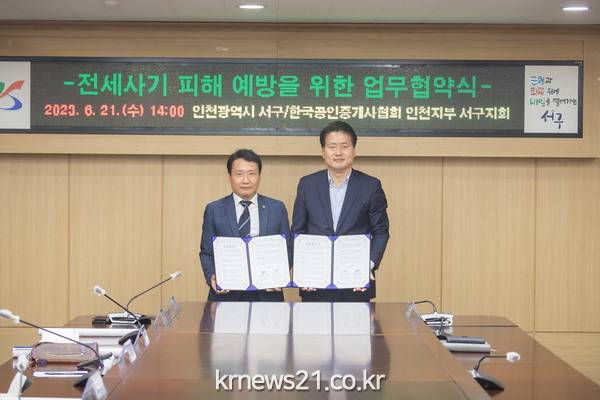 인천 서구(구청장 강범석)가 한국공인중개사협회 인천지부서구지회(지회장 홍흥표)와 21일 이 같은 업무협약을 체결했다고 밝혔다.